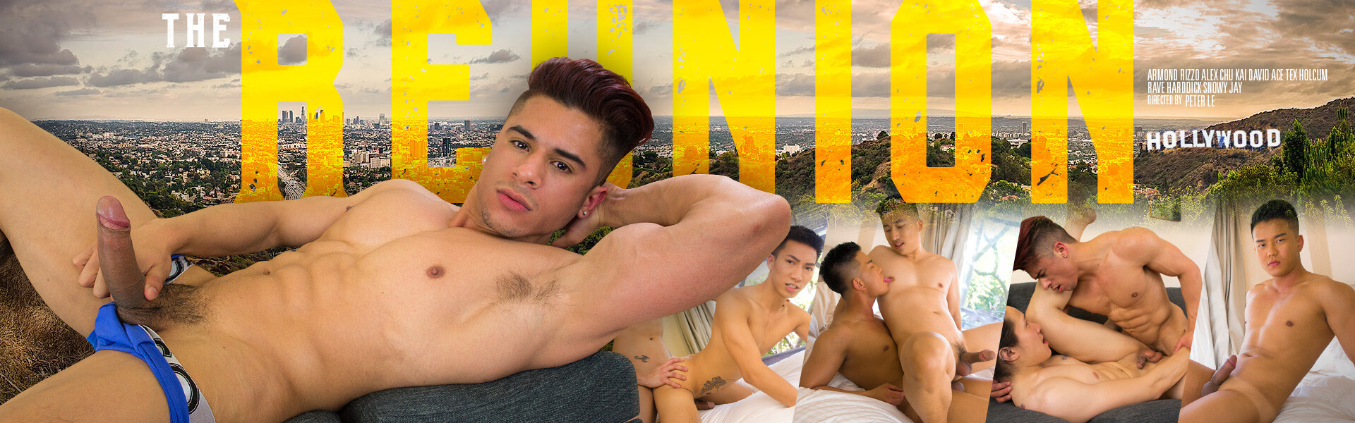 Starring: Armond Rizzo, Tex Holcum, Rave Hardick, Snowy, David Ace, Alex Chu, Jay and Kai. In "The ReUnion," we bring you a collection of gay college frat boys that have been invited back to a home in Los Angeles where they first went to College, for their five year Reunion. The two organizers, Tex Holcum and David Ace, are the first to come to the house they rented out for the weekend where they "Christen" the house by having sex in front of a cross. What follows is a lot more sexy fun as veteran stars such as Armond Rizzo and newbies like Alex Chu and David Ace arrive and relive their wildest memories and live out their sexual fantasies on each other!