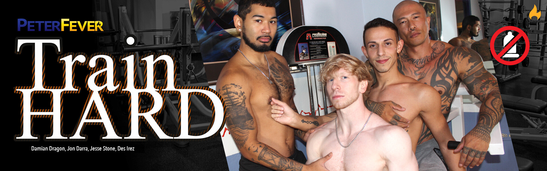 Are you ready to Train HARD? PeterFever's new series features hot bodybuilders giving real Personal Training lessons, based on their favorite body part. Of course, we take the training one step further because there is no better cardio after a good workout than sex! Featuring an all star cast of PeterFever models including Damian Dragon, Jon Darra, Des Irez and sexy newcomer Jesse Stone and filmed at the iconic Hawk's Gym in Las Vegas, we are certain that this sweaty, end of summer series is just what you need to stay scorching hot all year long!