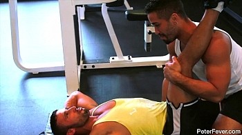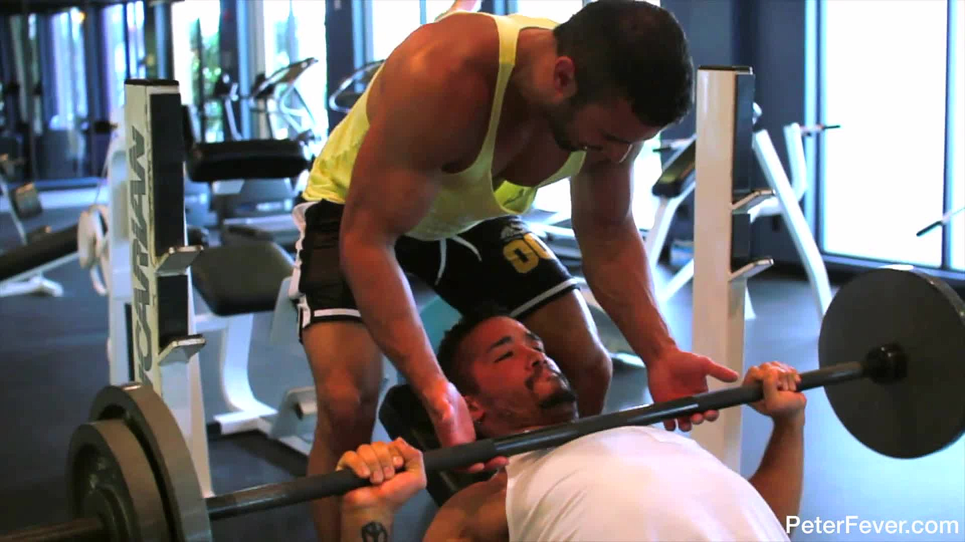 So Peter and I headed to the gym and saw all these hot buff guys working out. I could smell the musk radiating from them, it was intoxicating. On the way to the free weights we noticed Trey Turner doing crunches. I've never noticed how ripped his body looked. He suggested we have public sex in the locker room; the idea was tempting but there were too many people and we could get caught. We started working out and he spotted me on the bench press. As I was pumping iron, I could see his dick growing bigger and bigger. He must have loved seeing me flex my bulging muscles. The sexual tension was building and I grabbed his hard cock through his shorts. I felt naughty doing this in front of everyone. Fuck, I couldn't hold it in anymore; I wanted to stretch his ass out next! We have to go to the locker room now! I just hope we don't get caught. Watch Trey Turner and Diego Vena in this week's episode, "Pump You Up."