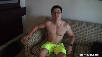 I'm happy to introduce you to our newest model Kai. He hails from China but has lived here in the US most of his life where he is working on his Bachelor's degree in Science. With an adventurous side, Kai says he is straight, but will get with guys as well. Naked and stretched out on the bed, I got a great look at his muscular body while he used a vibrator to harden his thick cock. Pumping his member in and out his hand, I got closer as Kai's sensual moans echo. He loved to play with his nipples and moan. With a, "close, close, close," Kai oozed out his thick load, while his hole continued to pucker. For some Behind the Scenes, this is a great opportunity to see Kai's comical personality; it really is all about him and not the fly.