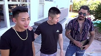 Sexy aviator-sunglassed stud Jon Darra is the cockhungry realtor showing home-hunters Hans Raw and Jeremy Vuitton the midcentury modern house they've been searching for. Once they see the pool, they're sold, but how to make sure they get the house? When Jon gets handsy with Hans, the young couple decide to play along with his sleazy plans. "He grabbed my ass! Do you mind if I mingle with him?" Hans asks, getting permission to fuck with the horny agent.
