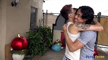 When Jay sneaks away to meet Nolan, they immediately strip and begin their illicit fun. Jay peels off Nolan's shorts and pops the big tool into his thirsty mouth. Nolan repays him with a juicy blowjob, slurping his long curved prong to the fuzzy root. They heat things up in the bubbling hot tub, where Jay smacks his stiff dick against Nolan's firm chest before fucking it down the twink's throat. He smacks Nolan's tight ass around a bit as he burrows his face in. "Give me a piece of that!" he implores as he rubs his cock into Nolan's wet buttcrack.