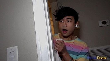 Asian twink Hoshi steps inside from a hard day at work to find that something's amiss. Following some lusty groans and a trail of musky underwear and socks in the hallway, he finds his boyfriend Jon Darra in the bedroom busy getting plowed by handsome Euro-fucker Mika Ayden.